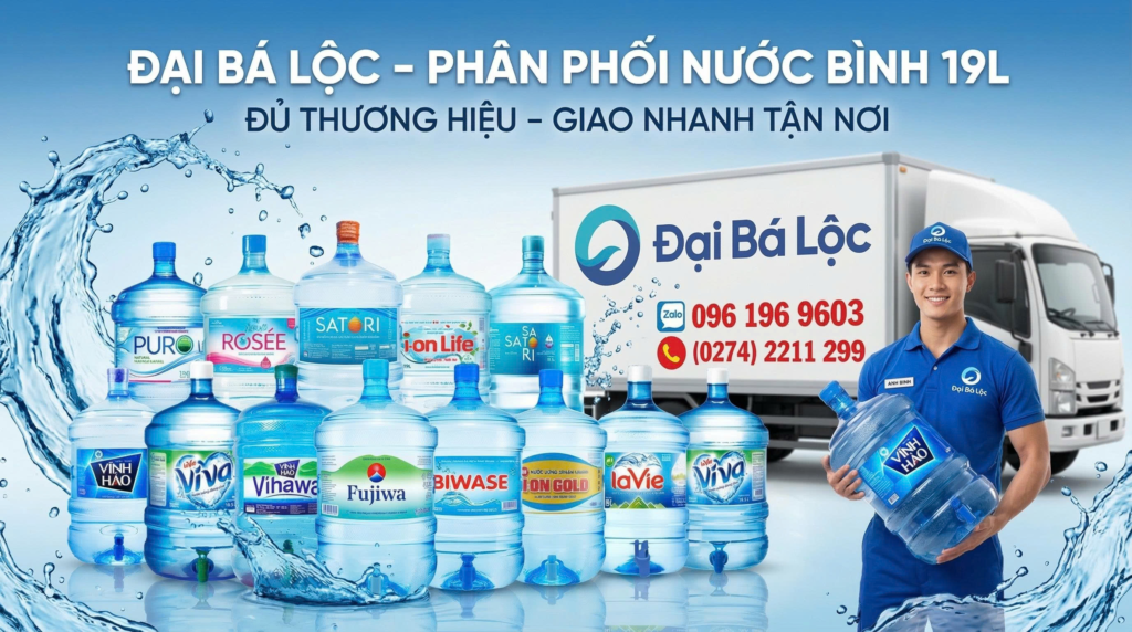 CÔNG TY TNHH THƯƠNG MẠI ĐẠI BÁ LỘC mang đến giải pháp cung cấp nước uống đóng bình đa thương hiệu, đa phân khúc giá, đảm bảo chính hãng – an toàn – tiện lợi, giao tận nơi tại Thủ Dầu Một, Bến Cát, Tân Uyên, Thuận An, Dĩ An và các khu vực lân cận.